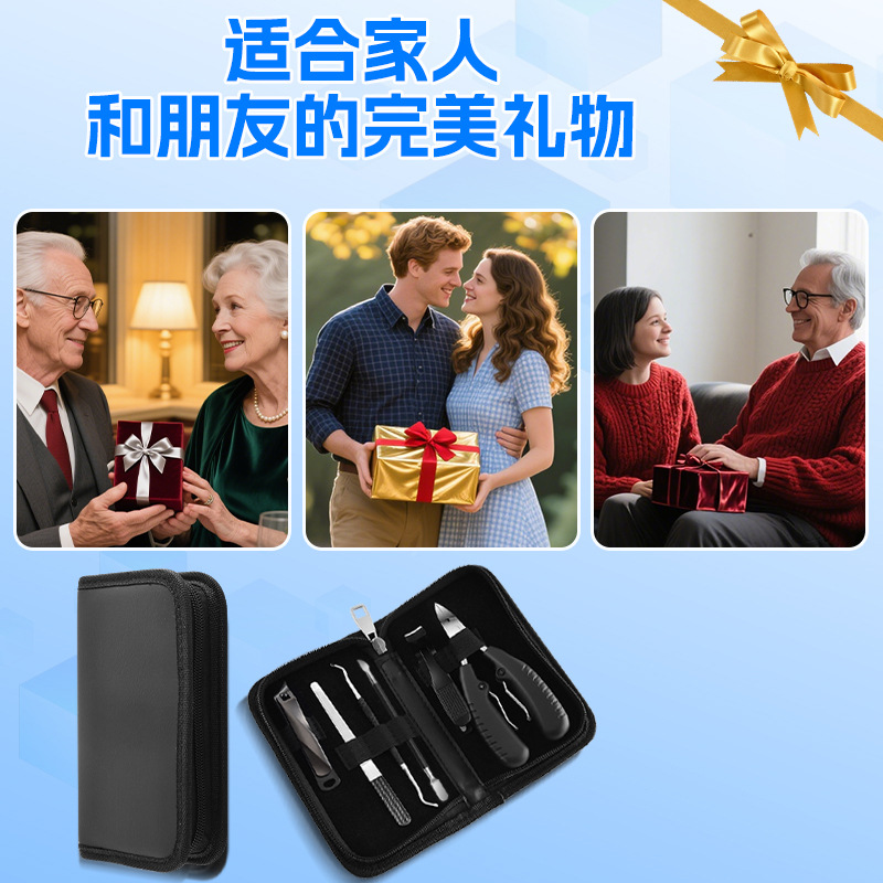 这不仅是一套指甲剪美容工具,更是一套完整的便携式个人护理方案。套装内精心配有多款实用工具,如双面打磨锉,用于修整边缘、抛光甲面;死皮清理推棒,助您轻松打理指甲周边细节。所有工具可集中收纳,居家使用整洁有序,出差旅行携带方便,随时随地保持优雅仪容。