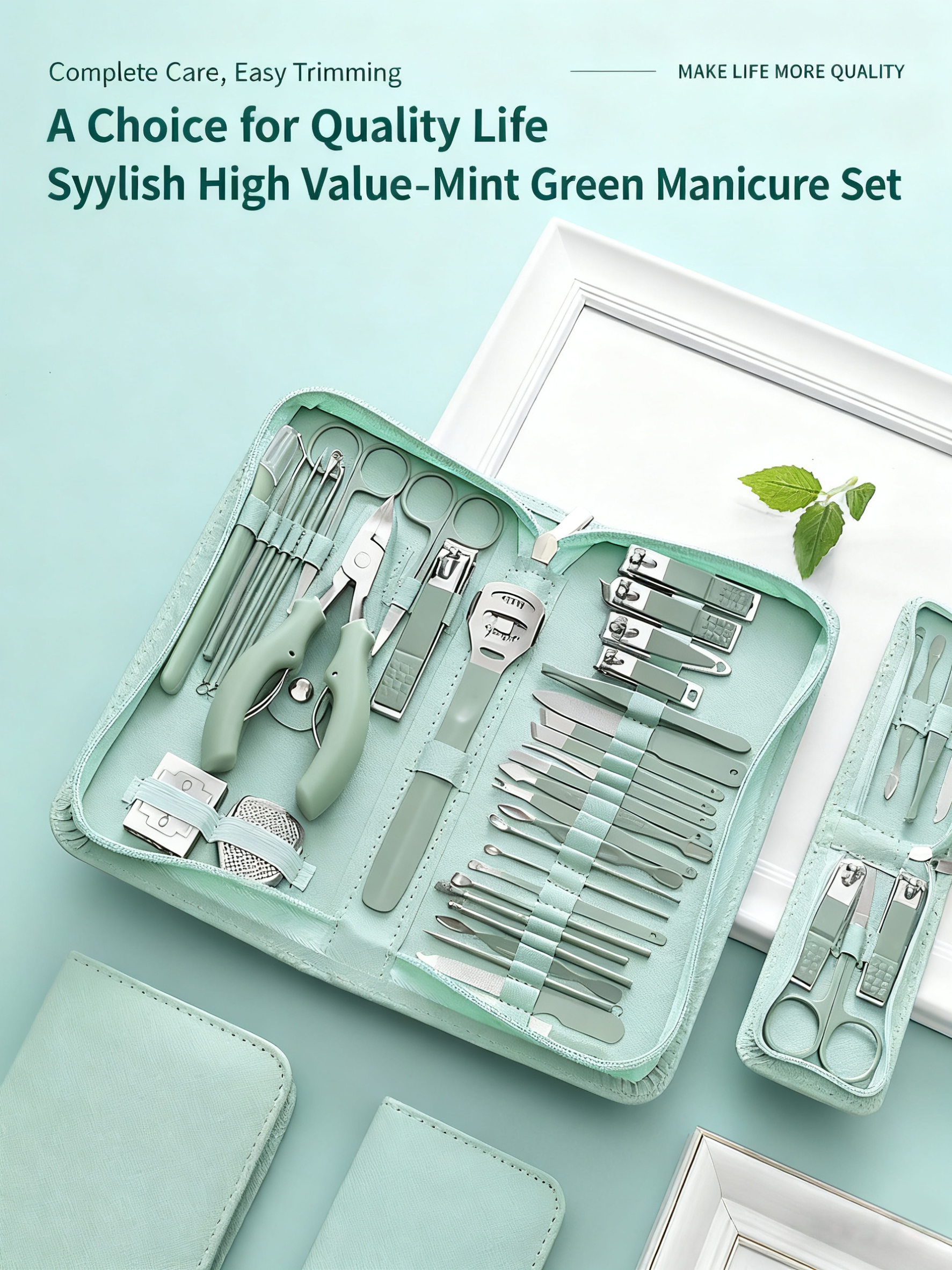 When you open this exquisite mint - green set, you will find it full of well - matched practical tools: