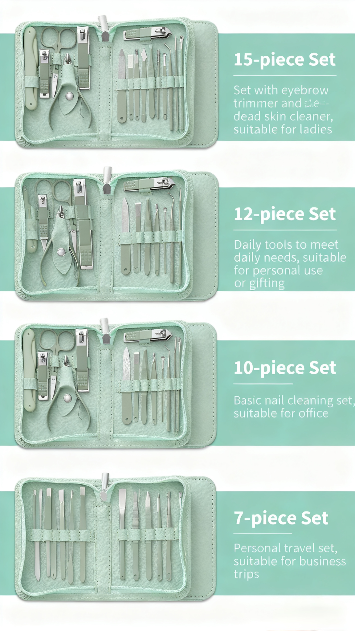 Nail files and small tweezers: Nail files can polish the edges of nails to be smooth and delicate, and small tweezers can be used to deal with some subtle skin problems, such as pulling out tiny hangnails, meeting the nail and surrounding care needs in an all - round way.